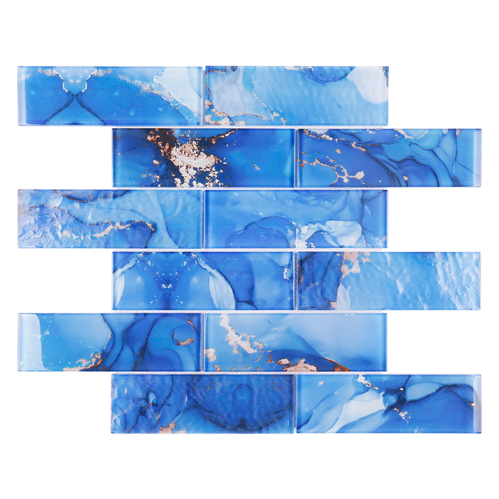 • Subway Mosaic: Small glass rectangles in classic brick patterns.