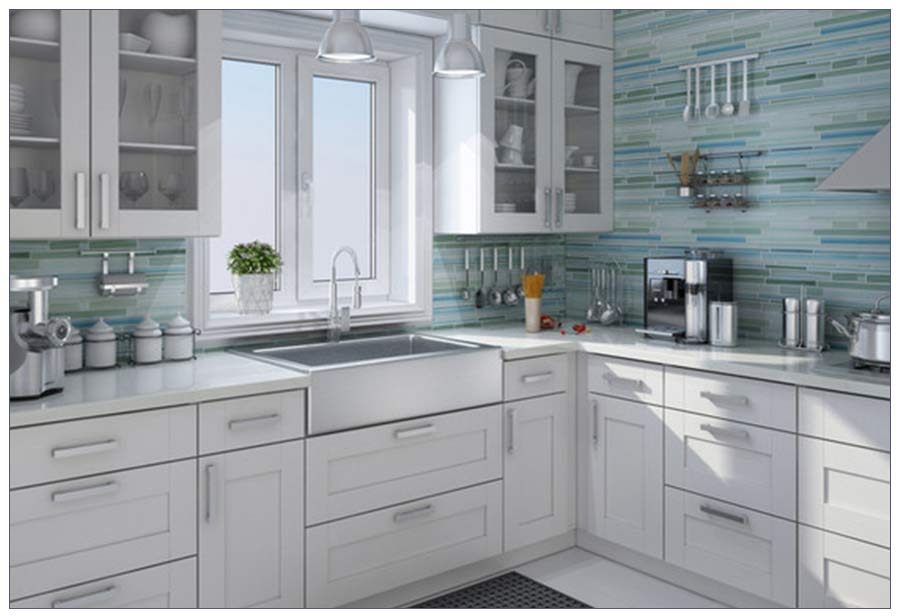 You can use glass mosaic in numerous applications, not just your kitchen backsplash, but also the bathroom.