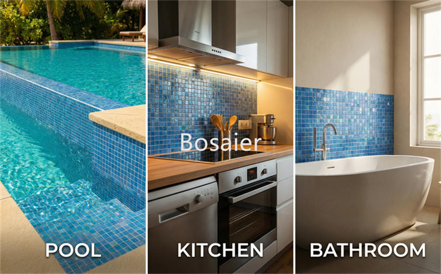Pool mosaic tile is made up of small tiles stuck to a net. These tiles are usually glass, ceramic, or stone. Because they’re small, you can make fancy patterns and use bright colors. They also give your pool a smooth look. Lots of people like them because they make pools look nice. We have many different pool mosaic tiles for any style and budget.