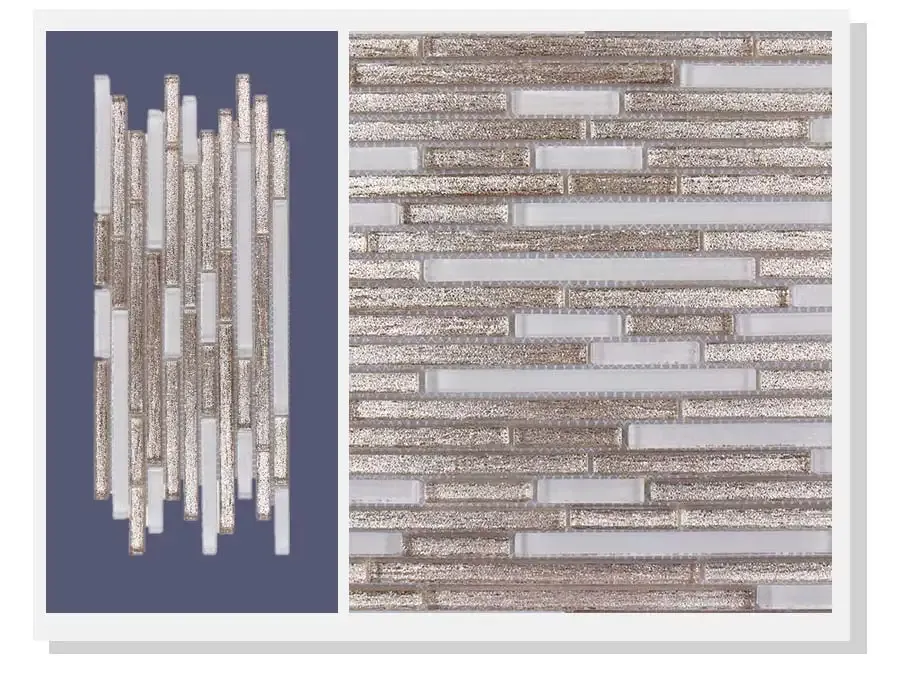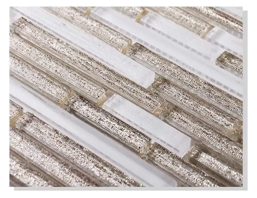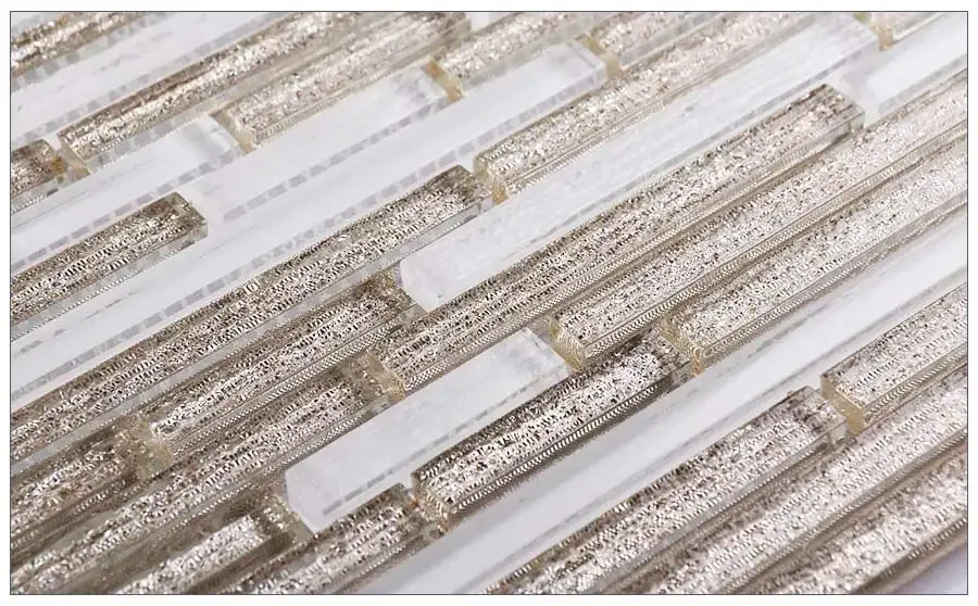 Refresh your home’s design with this Luxury style gold white shiny glass mosaic tile. The long lines of a linear shaped glass decorative can make a small room seem bigger.This product can be installed on a shower wall.